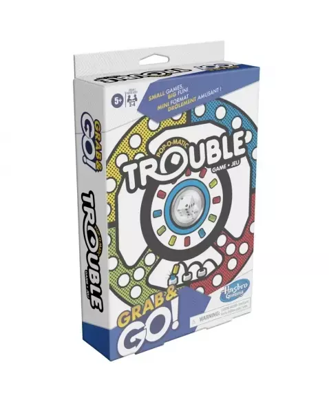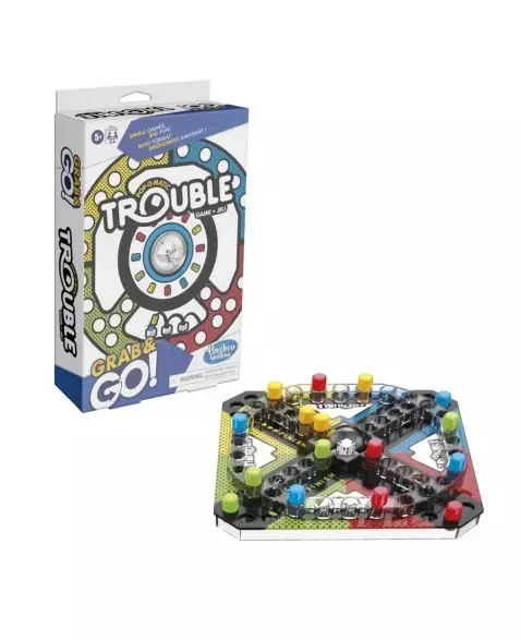 Diversão portátil e emocionante para todas as suas aventuras! O clássico jogo Trouble agora está disponível em uma versão compacta e prática, perfeita para levar a qualquer lugar. O Trouble Grab & Go! da Hasbro Gaming traz toda a emoção do jogo original em um formato que cabe na palma da sua mão.